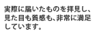 実際に届いたものを拝見し、見た目も質感も、非常に満足しています。もっと早く購入を決意すれば良かったと思うほどです。プラスチックのケースにも入っていて、とても丁寧だと感じました。